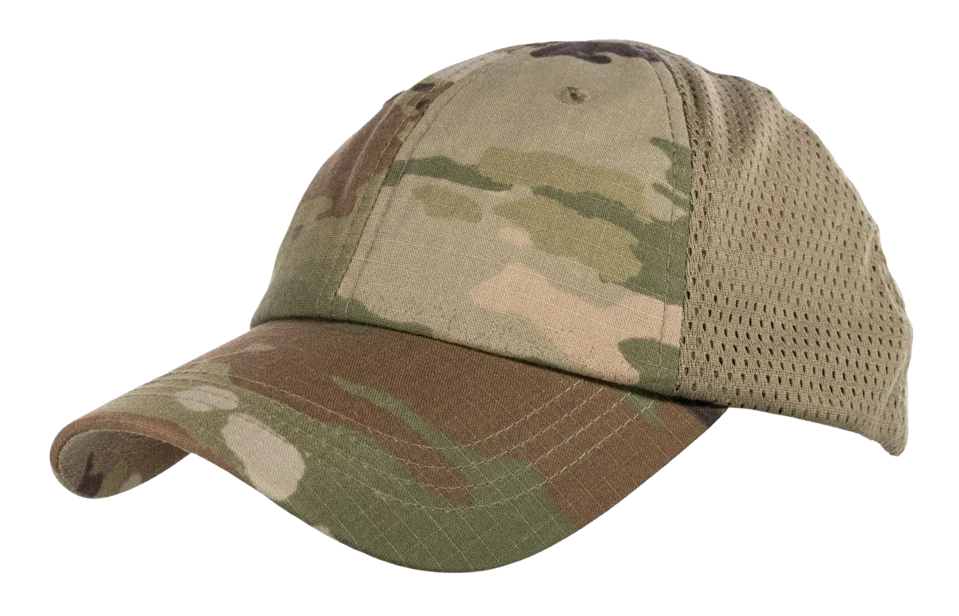 A: The Tactical OCP Mesh Cap combines rugged ripstop material on the front with breathable mesh panels on the back and sides, offering ventilation and durability specifically for tactical or field use, not just casual wear.